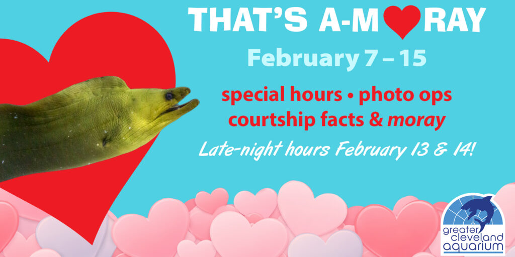 Bonus: adult ...beverages available from 5:30–7:30pm both nights (21+, for purchase). Love is in the air . . . and the water. https://www.greaterclevelandaquarium.com/event/thats-a-moray/